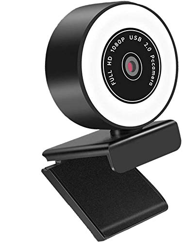 Soyerras Full HD 1080p Webcam per PC Luce ad Anello Webcam per pc con Microfono Stereo/pc Camera con Microfono USB/per Video Chat e Registrazione Compatibile con Windows Mac e Android