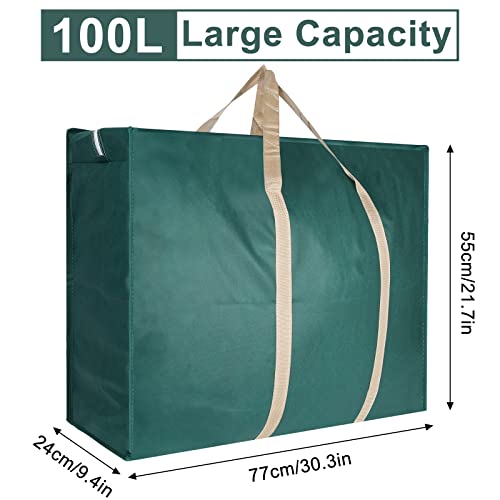 SOYIRI 100L Borsa Portaoggetti Grande per Vestiti,3 PC Pieghevole Sacchetto di Immagazzinaggio Borsa di Stoccaggio,Traslochi Borsa per Biancheria da Letto Vestiti,(77×55×24cm,Verde)