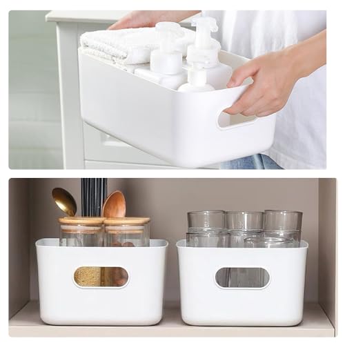 SET INCLUSO: 10 pezzi di cestino portaoggetti plastica bianca, ognuno dei quali misura circa 20,5 x 14,5 x 7,5 cm, per tenere in ordine il bagno e la cucina, perfetti per famiglie impegnate e organizzatori professionisti.