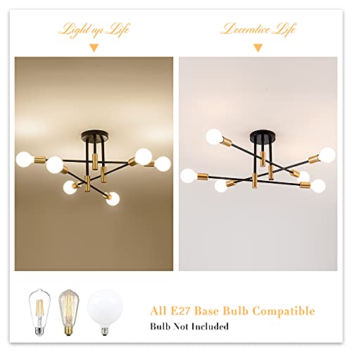 SOZOMO Lampadario Nordic Sputnik, lampadario post moderno, metà del secolo, oro e nero moderni, lampadario con ramificazioni, E27, plafoniera flush mount, sala da pranzo, loft