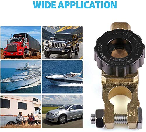 Ampia applicazione: l'interruttore di scollegamento della batteria consente di scollegare rapidamente e facilmente la batteria dell'auto per sicurezza, manutenzione o stoccaggio. Applicabile a auto, barche, camion, camper, ecc. Principalmente utilizzato per risolvere il problema di perdite e perdite di elettricità causate da batterie che non vengono utilizzate frequentemente in auto, moto e auto.