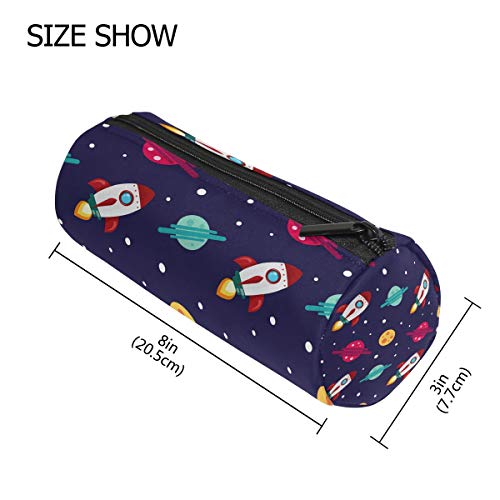 Space Galaxy Rockets Planets - Astuccio porta matite per bambini, ragazzi, ragazze, studenti, penne, scuola, borsa per trucco rotondo