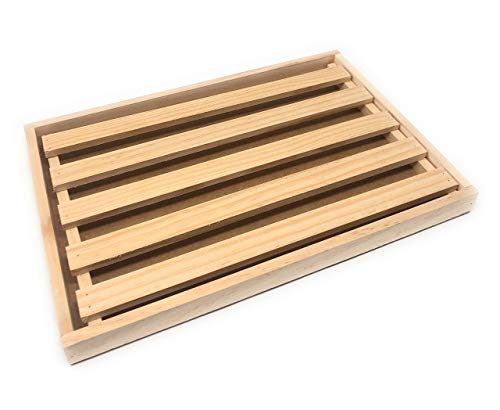 Space Home - Tagliere per Pane con Griglia in Legno - Griglia Estraibile Raccogli Briciole - 32 x 22 x 2,5 cm