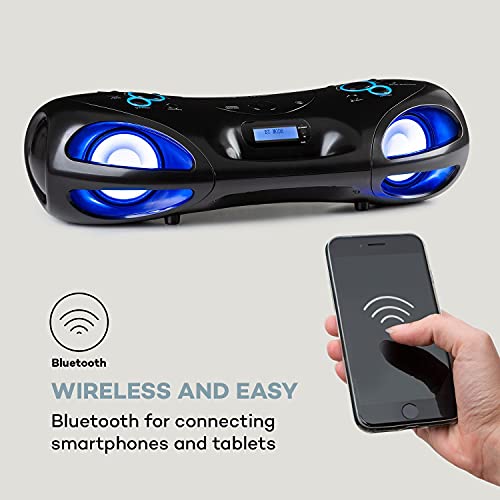 Auna Spacewoofer - Boombox DAB con Lettore CD, Cassa Portatile, 40 Watt, Radio FM, DAB+, Bluetooth, USB, AUX IN, Effetti LED, Alimentazione a Batteria o con Rete Elettrica, incl. Telecomando, Nero