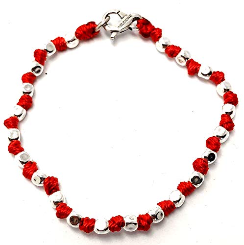 Spadarella spadino bracciale con pepite in argento 925 di diametro 4 mm e cotone nautico rosso.Fatto a mano.Unisex.Lunghezza 19cm.