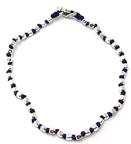 Spadarella spadino bracciale con pepite in argento 925 di diametro 3 mm e cotone nautico blu acceso.Fatto a mano.Unisex.Lunghezza 19 cm.