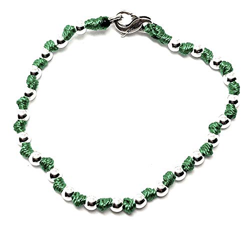 Spadarella spadino bracciale con sfere in argento 925 di diametro 4 mm e cotone nautico verde smeraldo.Fatto a mano.Unisex.Lunghezza 17cm.