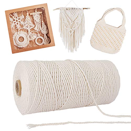 Spago Bianco, 200M Spago per Decorazioni Naturale, 2 MM Durable Macrame Corda di Cotone, Filo Cotone per Tende Wall Hanging Acchiappasogni, Cordoncino Fai da Te Arazzo Festa Natale