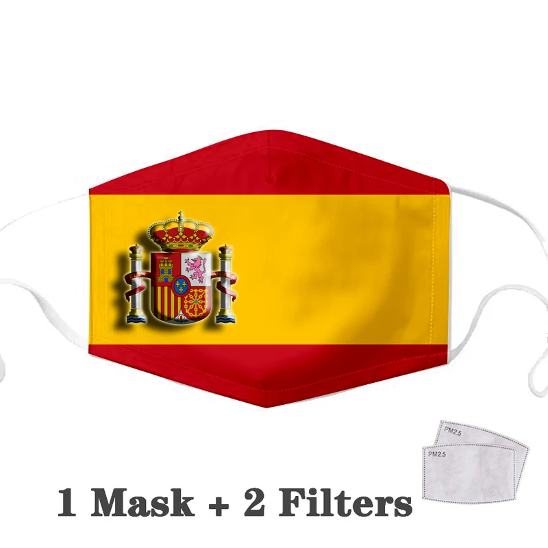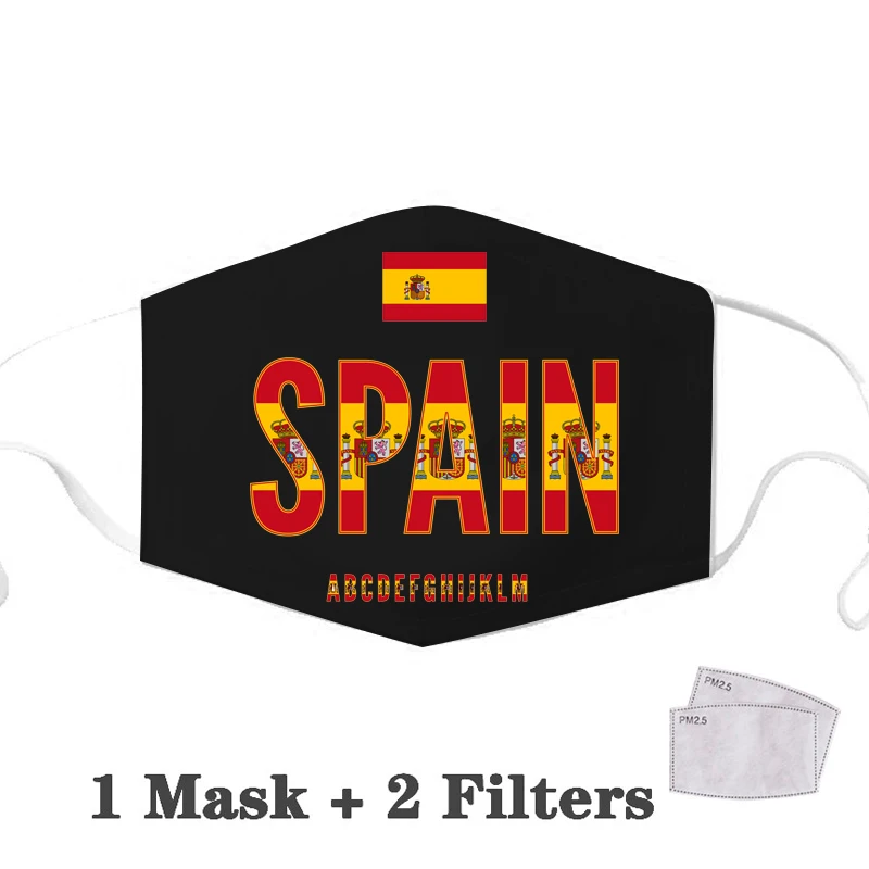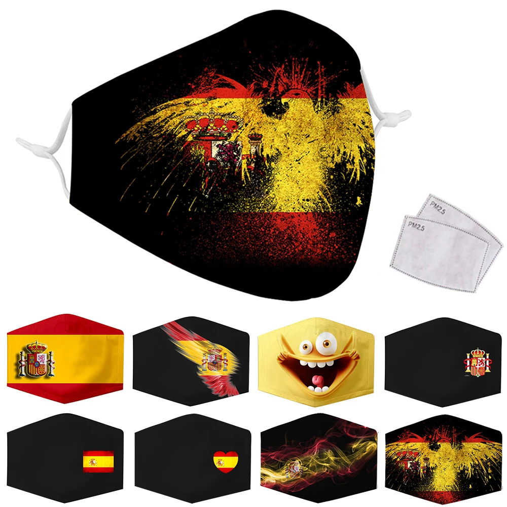 Spain Flag Black Adult 2 pcs PM2.5 Filter Face Masks Reusable Mouth Mask Washable Face Mouth Mask