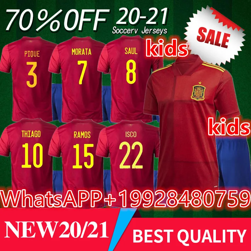 Kids Kit 2020 2021 Spaines Home Baby Jerseys PIQUE A.INIESTA MORATA THIAGO RAMOS ISCO Diego Costa 20/21 Spain Child Shirts