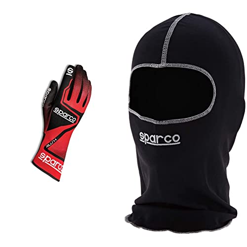 Sparco 00255610RSNR Rush 2020 Guanti Karting, Rosso/Nero, 10 & 002231 N Passamontagna Basic, Nero