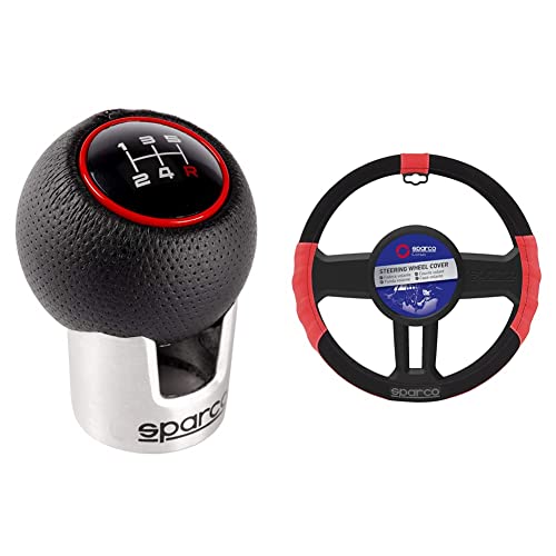 Sparco 070.09665 Pomello Cambio Lazio, Nero/Rosso & Spc1108Rs Coprivolante Sterzo L-Sport, Nero/Rosso