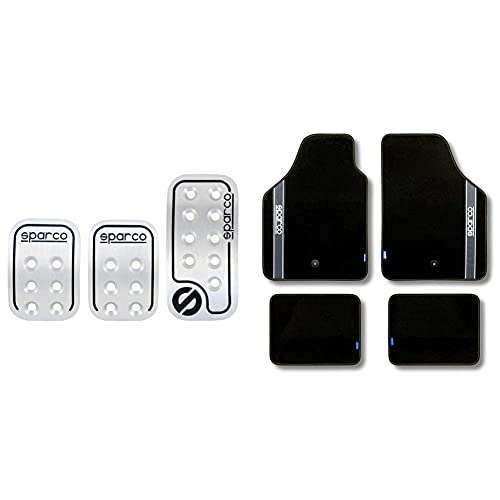 Sparco Opc04060000 Set Pedali & 03763Bar Set Tappeti Moquette, Strada, Grigio, Set Di 4