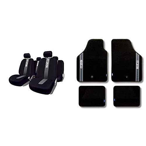 Sparco Spc1012 Set Coprisedili Per Auto In 11 Pezzi Classic Nero/Grigio, Set Di 11 & 03763Bar Set Tappeti Moquette, Strada, Grigio, Set Di 4