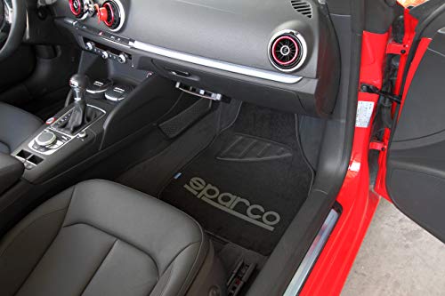 Sparco SPC1904A Set 4Pz Tappeti Universali con Battitacco DX/SX Logo Nero Tappeto Grigio. Dimensioni Ant.:65X47 Cm/Post.:30X40 Cm
