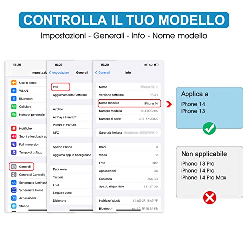 Vetro Temperato e Pellicola Fotocamera compatibile con iPhone 14 / 13 (6.1 Pollici), non adatto ad altri modelli