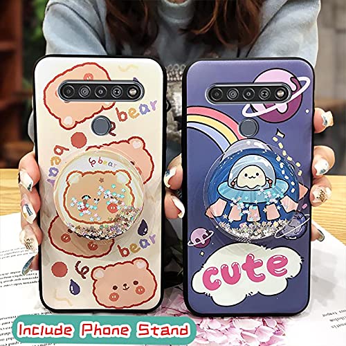 Toy Sparkle Lulumi - Custodia per LG K41S/K51S, per ragazze, anti-bussare, con stelle originali Glisten Liquido Bumper Elegante Design Protettivo Soft Glitter Cavalletto, Rosa gatto e libro