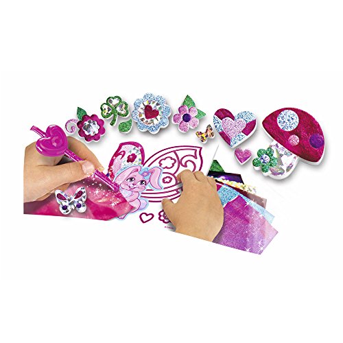 Include una penna per trasferire il colore, molti charms, fogli brillanti e gemme naturali