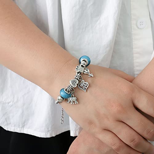 Yean Sparly Blue Rinestone Charm Bracciale Argento Perline Fiore Mano Gioielli per Donne e Ragazze (E)