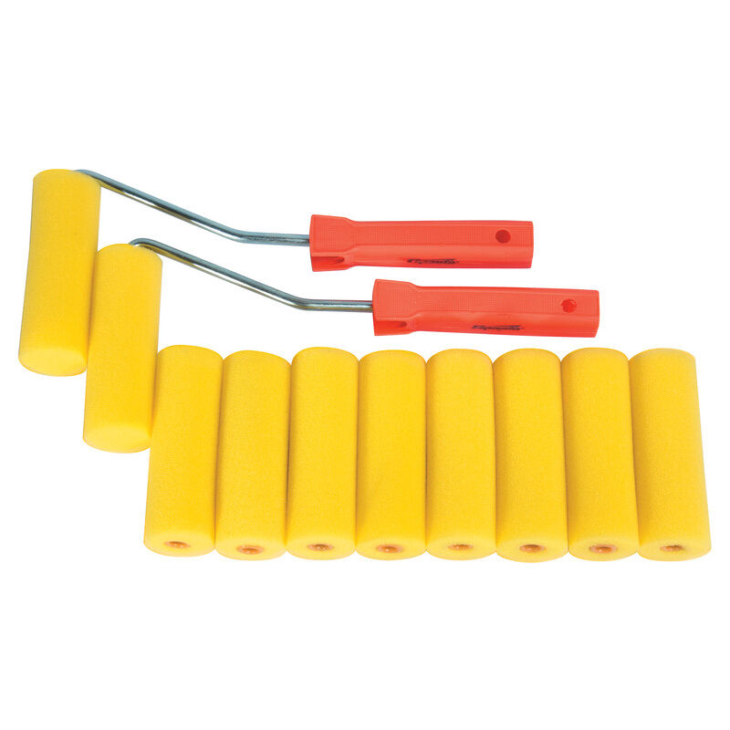 I rulli SPARTA sono progettati per l'applicazione di calce, vernice, smalto, colla a base d'acqua. Sono ideali per lavorare su piccole superfici lisce. La schiuma dei rulli ha un forte potere assorbente che consente di immagazzinare una grande quantità di vernice e quindi di verniciare in modo efficiente e rapido. Il design a rilascio rapido dei rulli consente di sostituirli facilmente e smontarli per una pulizia semplice. Consentono un' applicazione uniforme e più veloce. Il set contiene 10 rulli e 2 manici in plastica. Informazioni tecniche: - Dimensioni: 100 x 35 mm