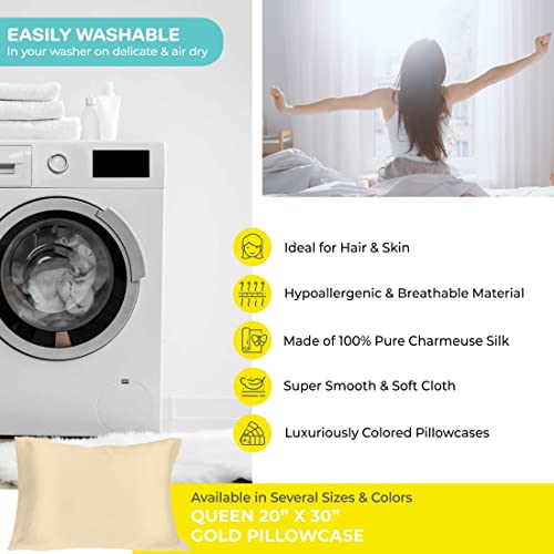 SpaSilk - Federa per guanciale in Pura Seta al 100%, per trattamenti di Bellezza per Il Viso, Misura Standard o Queen Size, Seta, Oro, Queen