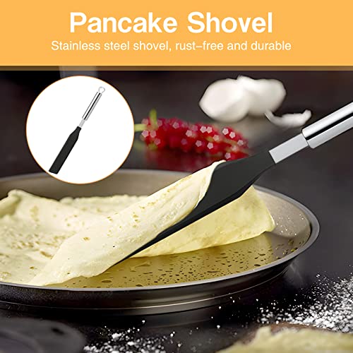 【Materiale di alta qualità】: il distributore per crepes e la spatola in acciaio inox sono realizzati in materiale di alta qualità, durevole e sicuro da usare e il manico dritto stabile è comodo da tenere in mano.