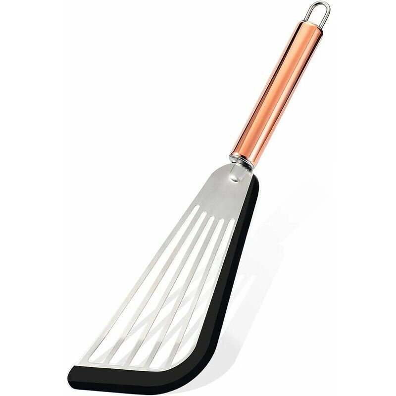 Le lame flessibili rendono divertente cucinare. Design ergonomico, più facile da girare. I raschietti a lama sono perfetti per girare uova, pancake, pesce e verdure senza graffiarli. La spatola standard è lunga 30 cm TECNOLOGIA DEL SUPPORTO IN ACCIAIO INOSSIDABILE CHIAVE - La forza e la flessibilità delle nostre anime e maniglie in acciaio inossidabile significano che questi utensili resisteranno all'uso intenso da parte di cuochi domestici e professionisti senza rompersi come plastica economica i marchi dei negozi lo fanno. Silicone di grado professionale ad alta temperatura 600°F - Il nostro silicone LFGB privo di BPA, approvato dalla FDA e certificato si lega all'acciaio inossidabile flessibile per un uso sicuro su pentole rivestite e antiaderenti, ideale per cibi caldi e intorno ai piani cottura.< /p> Lussuosa maniglia dorata che non sbiadisce - La finitura galvanica non sbiadisce mai. Inizialmente avevamo programmato di applicare il LOGO al laser sull'impugnatura, ma il laser non