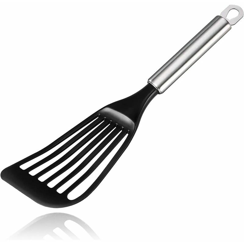 COSTRUZIONE PREMIUM E ROBUSTA: l'acciaio inossidabile 18/8 (304) fuso in un unico pezzo vanta una struttura incredibilmente robusta: puoi conservare questo prodotto per gli anni a venire. ESPERIENZA DI DESIGN INTELLIGENTE E MIGLIORE: questa il raschietto scanalato è progettato con un bordo angolato sottile e flessibile per scivolare sotto cibi delicati e drenare grasso, olio o salse. Processo di macinazione, aspetto elegante: questo prodotto è realizzato mediante processo di macinazione, è più liscio e più confortevole, puro e pulito, acciaio inossidabile argentato, semplice ed elegante. FACILE DA PULIRE E CONSERVARE: Lavabile in lavastoviglie e facilmente lavabile a mano poiché la sua superficie liscia è realizzata in acciaio inossidabile di alta qualità che non arrugginisce mai - lì è un gancio per appendere che si adatta alla forma del tuo cassetto. Dimensioni: spatola per friggere 32,5 x9,5 cm Confezione: 1 spatola per friggere (1 forchettone in omaggio)< /p>