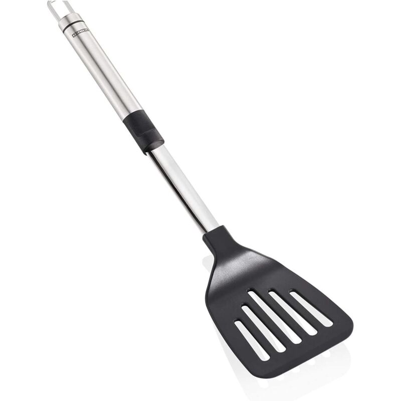 Chic, sobri ed eleganti, queste sono le caratteristiche degli utensili da cucina della serie ProLine di Leifheit. Con il loro bellissimo design in acciaio inossidabile di alta qualità e plastica nera, sono un complemento elegante per ogni cucina e perfettamente adatti anche per l'uso a tavola. Comodo da usare. La spatola è realizzata in nylon resistente al calore e protegge il vulnerabile rivestimento antiaderente delle vostre padelle. Il manico di questa spatola della serie ProLine è realizzato in acciaio inossidabile di alta qualità e ha una forma ovale. La spatola è quindi piacevolmente stabile e sicura nella mano. Con pratico occhiello per appendere. Adatto per la barra appendiabiti ProLine disponibile separatamente. Un'aggiunta elegante a qualsiasi cucina. Combinazione di alta qualità di acciaio inossidabile e plastica nera. Spatola in nylon resistente al calore - ideale per pentole con rivestimento antiaderente la mano. Diametro 12,5 mm. Con pratico occhiello per appenderlo.