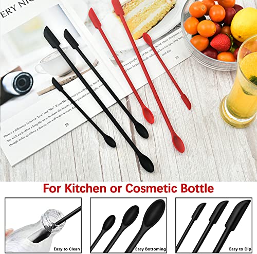 Mini Spatola Silicone,6 Pezzi Piccola Spatola Mini Barattolo,Spatola Doppia con Cucchiaio,Design All-In-One,Riutilizzabile, Flessibile,Spatola Ultima Goccia per Bellezza E Cucina (Nero,Rosso)