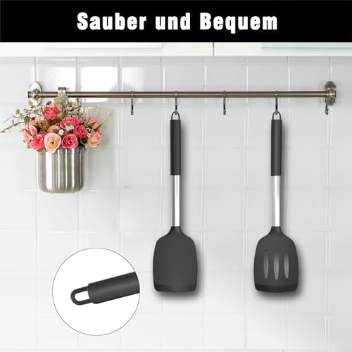【Facile da pulire e riporre】: il set di spatole in silicone ha un comodo foro sulla parte superiore che lo rende facile da riporre. Facile da pulire: il set da cucina può essere pulito facilmente e comodamente in lavastoviglie.