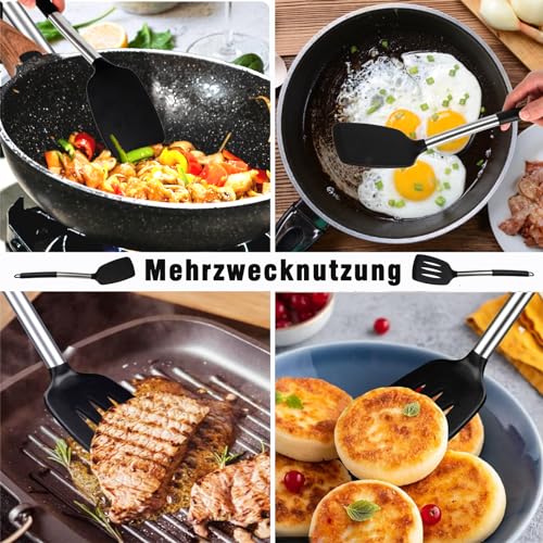 Spatola in Silicone 2 Pezzi Set di Spatole per Utensili da Cucina in Silicone, Utensili da Cucina con Spatola Scanalata in Silicone Resistente al Calore Senza BPA, Pentole con Spatola Antiaderente