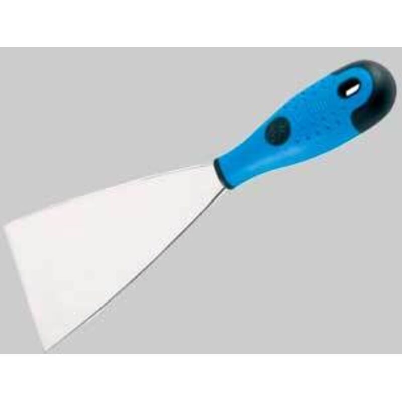 Lama di 12 cm di larghezza realizzata in acciaio di prima qualit?½. Arrotatura di precisione sulle lame per garantire conicit?½ e adeguata flessibilit?½. Manico bi-materiale realizzato in poliprofilene resistente a urti e gomma termoplastica antiscivolo. Design ergonomico per una presa perfetta e sicura. Fori antisdrucciolo. Resiste a temperature da - 60?½ C a + 180?½ C e agli agenti atmosferici. Semplice da pulire