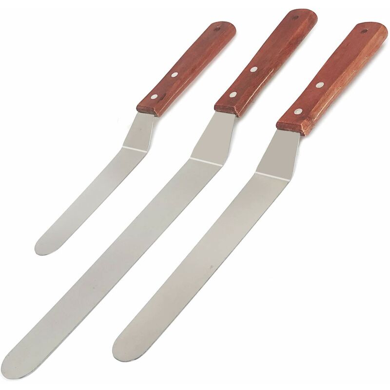 Queste spatole per glassa in acciaio inossidabile non si rompono né arrugginiscono. Sono lavabili in lavastoviglie e non si degradano nel tempo. Il set di 3 include lame da 6, 8 e 10 pollici ideali per glassare pasticceria, biscotti, pancake, torte e cupcake. Il manico delle spatole per glassa è realizzato in legno di qualità a grana fine con finitura verniciata, non marcisce. Sono progettati ergonomicamente per scorrere contro la superficie del biscotto o della torta e su ogni manico è presente un foro che è comodo da appendere. La spatola angolata è ideale per glassare e lisciare la glassa sulle torte senza mettere le dita nella glassa. La flessibilità garantisce un comfort e un controllo ottimali durante la smaltatura e la decorazione.