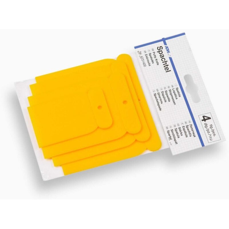 Set 4 spatole per stuccare, rasare e rifinire: corpo in plastica. Ideali anche per rimuovere ed installare pellicole e carte adesive.