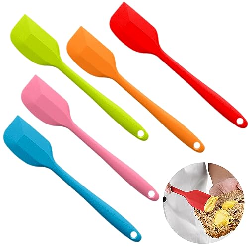 Set di 5 spatole in silicone, resistenti al calore, con anima in metallo, resistenti al calore fino a 500 °C, per cucinare e cuocere con sicurezza alimentare, multicolore