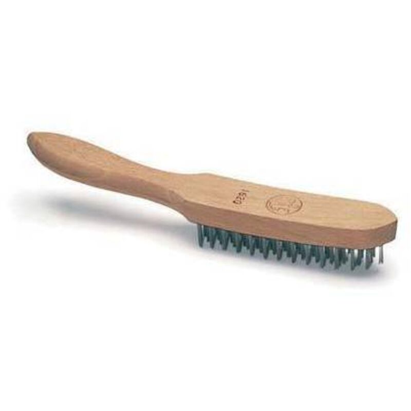 Spazzola in legno con manico e fili in acciaio temperato a 4 ranghi. Filo Ø mm. 0,35