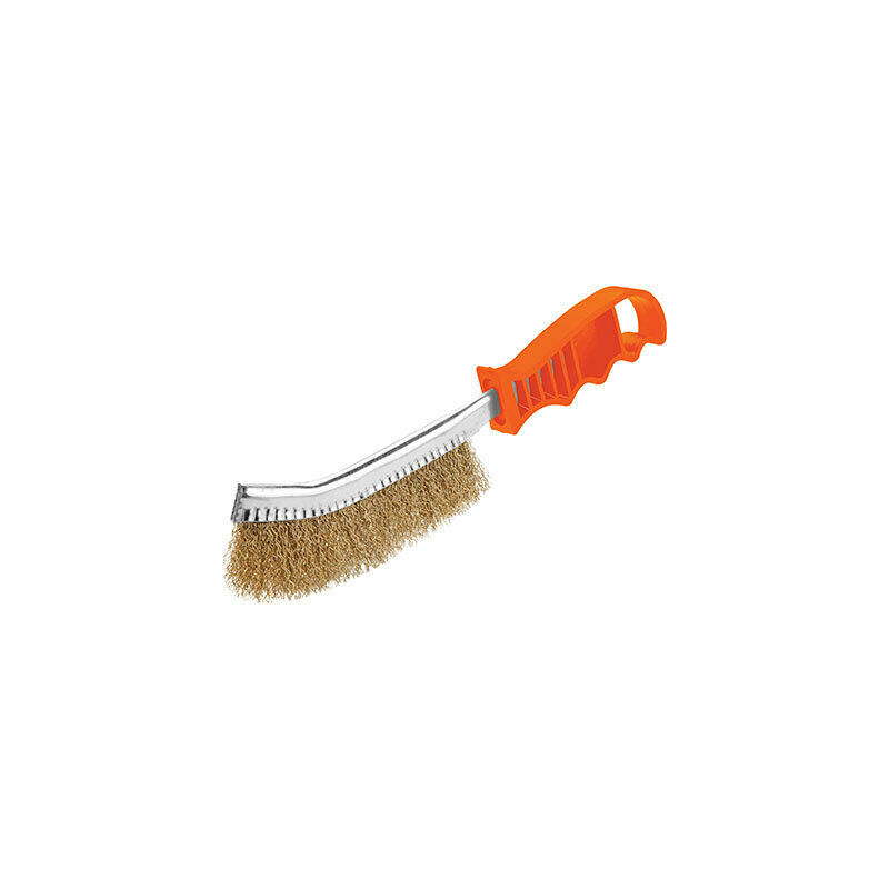Profilo curvo. Fili in acciaio ottonato. Manico ergonomico in plastica e dorso in metallo.