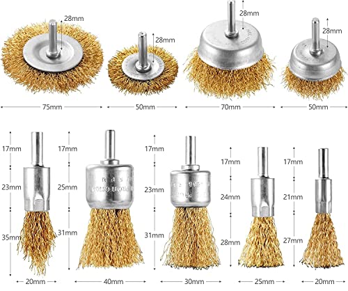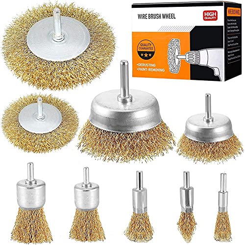 Spazzola Acciaio per Trapano, 9 Pezzi Spazzole In Ottone per Trapano per Pulire con Codolo da 1/4 di Pollice per La Rimozione di Ruggine Corrosione e Vernice