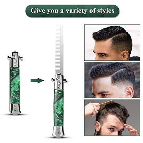 DESIGN PROFESSIONALE: Gli ampi denti del pettine del pettine dell'olio sono molto amichevoli per il cuoio capelluto, rendendo i capelli lucidi. I nostri pettini di commutazione accuratamente progettati hanno solide strutture a perno e impostazioni della rondella in rame, così come serrature a molla, per garantire che questi strumenti siano durevoli. Questo pettine pieghevole ti dà fiducia, in modo che tu possa praticare senza preoccupazioni!