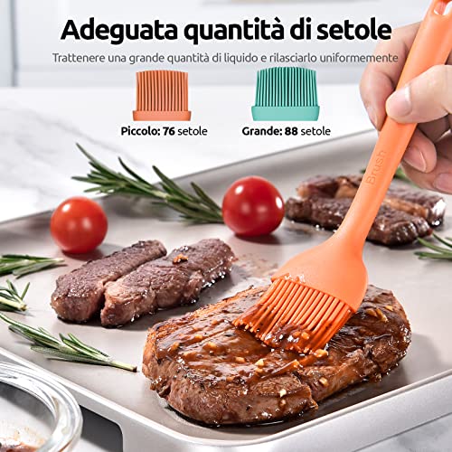 [Silicone alimentare resistente al calore 315 ℃] Realizzato con lo stesso materiale della tettarella per biberon, il pennello per bbq in silicone U-Taste può essere utilizzato sulla griglia o per spennellare salse o oli direttamente su carni e verdure calde nel forno e ancora tenere su bene. Questo pennello da pasticceria in silicone non si scioglierà né si spargerà nel cibo come quelli a base di capelli. Si mette in lavastoviglie, esce senza strato di grasso, senza macchia, senza profumo.