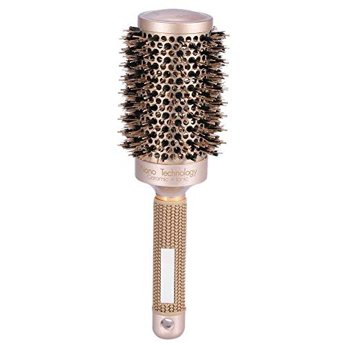 SPAZZOLA PER CAPELLI TONDI CON SETOLA: Il cuoio capelluto umano produce naturalmente olio chiamato sebo che funge da protezione per i capelli.Le setole aiutano a diffondere questo sebo in giro per lubrificare ciascuna ciocca di capelli che riduce l'effetto crespo.per una finitura liscia e una rapida asciugatura.Migliora la brillantezza con setole naturali.La grande forma rotonda crea volume e arricciatura con setole naturali.Antistatico, antibatterico.Altamente resistente al calore
