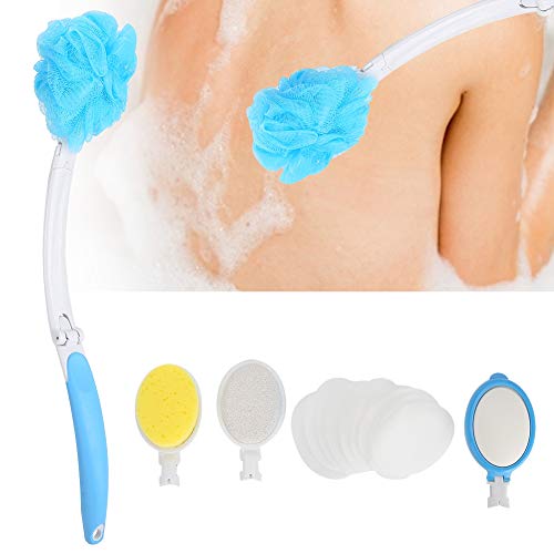 Spazzola da bagno multifunzionale Pieghevole Spazzola per il corpo con manico lungo Set doccia Scrubber per la pulizia della schiena con luffa Pietra pomice Emulsione Spazzole per la testa con custodia per uso domestico