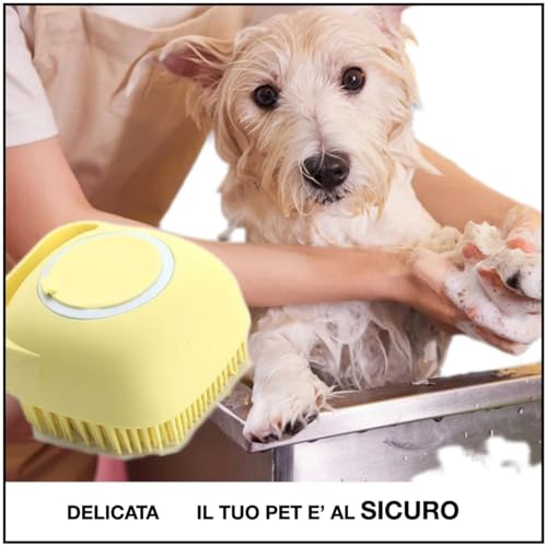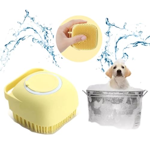 Spazzola da Bagno Shampoo Per Cani Gatti Animali Domestici Massaggio Dispenser Sapone Universale in Gomma per Toelettatura,delicata Lava Zampe (Colore Giallo)