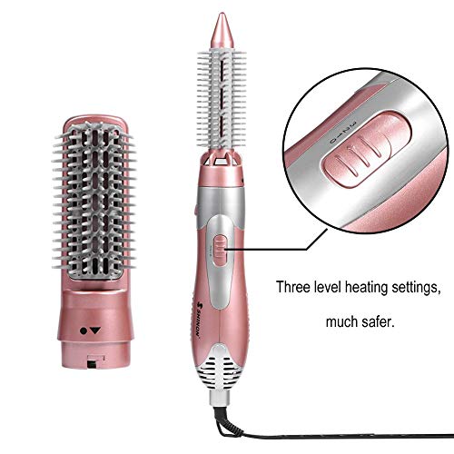 Impostazioni di calore a tre livelli: la spazzola ad aria calda è dotata di 3 impostazioni di calore: bassa, media e alta. Utilizzare l'impostazione di calore elevato per asciugare i capelli e l'impostazione di calore medio per un controllo preciso dello styling. L'impostazione a fuoco basso può essere utilizzata alla fine per modellare l'acconciatura. Adatto a tutti i tipi di capelli. ATTENZIONE: non concentrare il flusso d'aria in un'area per lunghi periodi di tempo.