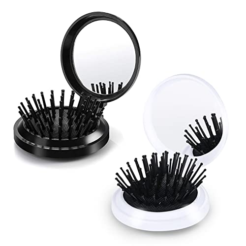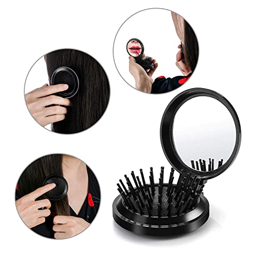 Spazzola Per Capelli,Folding Hair Comb,Mini Set Di Spazzole Pop-up Con Specchio Pieghevole,Spazzola Tascabile,Spazzole per Capelli Pieghevoli, Spazzole a Specchio da Viaggio
