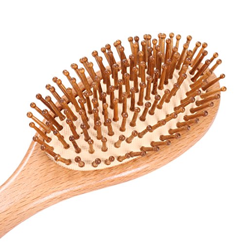 Spazzola per capelli in legno di faggio naturale, per capelli lunghi, spessi, ricci, ondulati, capelli secchi o danneggiati, setole in bambù ad ago effettuano un leggero massaggio per migliorare la salute dei capelli, spazzola districante per uomo, donna e bambini