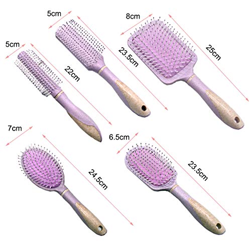 Spazzola Capelli In Plastica Antistatica Set, DBAILY 5pcs Set di Spazzole per Capelli Rotonda e Ovale Coda Pettine Ecologiche Spazzole Sciogli nodi per Donna Creare Un'Acconciatura Perfetta (viola)