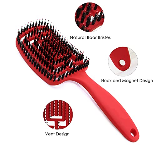 Spazzola per capelli, spazzola per capelli con setole di cinghiale, spazzola per capelli curva, può diffondere l'olio capillare, lisciare i frisotti, ventilare e accelerare l'asciugatura.