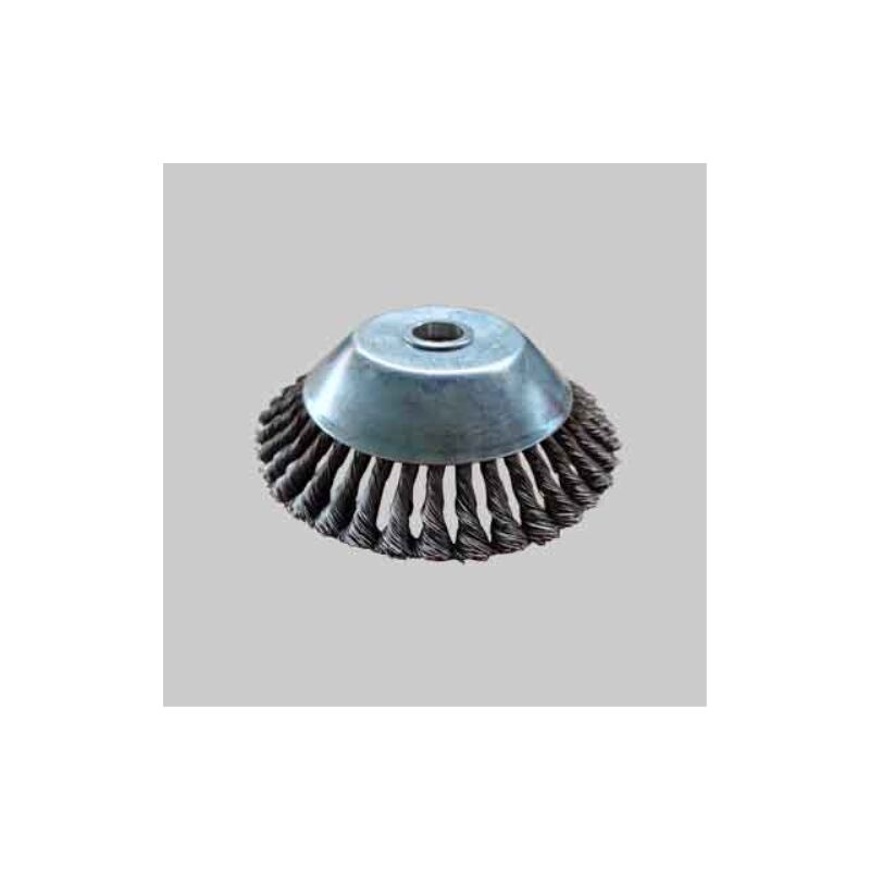 Le spazzole coniche per utilizzo su decespugliatore sono una scelta sicura, efficace e anche ecologica in quanto alternative a diserbanti chimici spesso vietati dalla legge in molti paesi. Diametro foro: 25,4 mm. Giri max rpm: 10000. Filo acciaio 0.05 mm. Rimuove facilmente e rapidamente erbacce, arbusti e vegetazione varia da strade, pavimenti e marciapiedi di qualsiasi genere (asfalto, ciottoli, ...) anche in ampi spazi (cortili, parcheggi, ...). Spazzola conica per decesepugliatore fili ritorti ideal star ø 200 mm - 38 mazzetti IDEAL STAR Dischi per decespugliatori